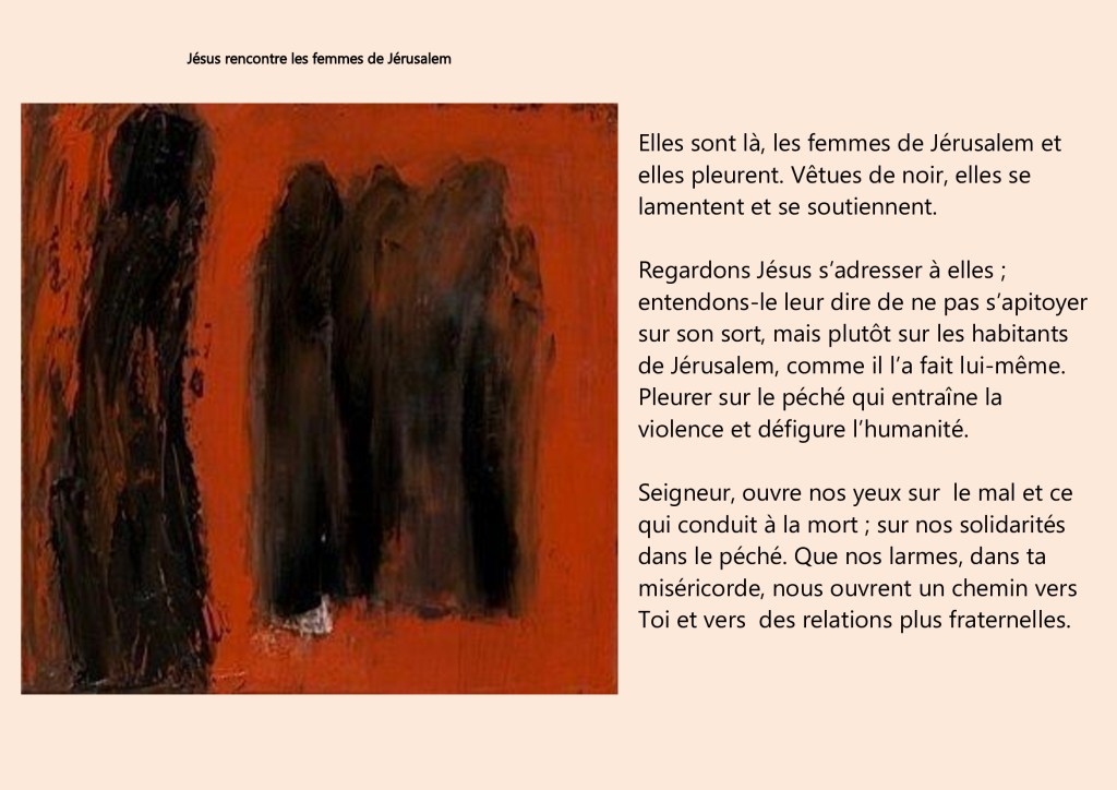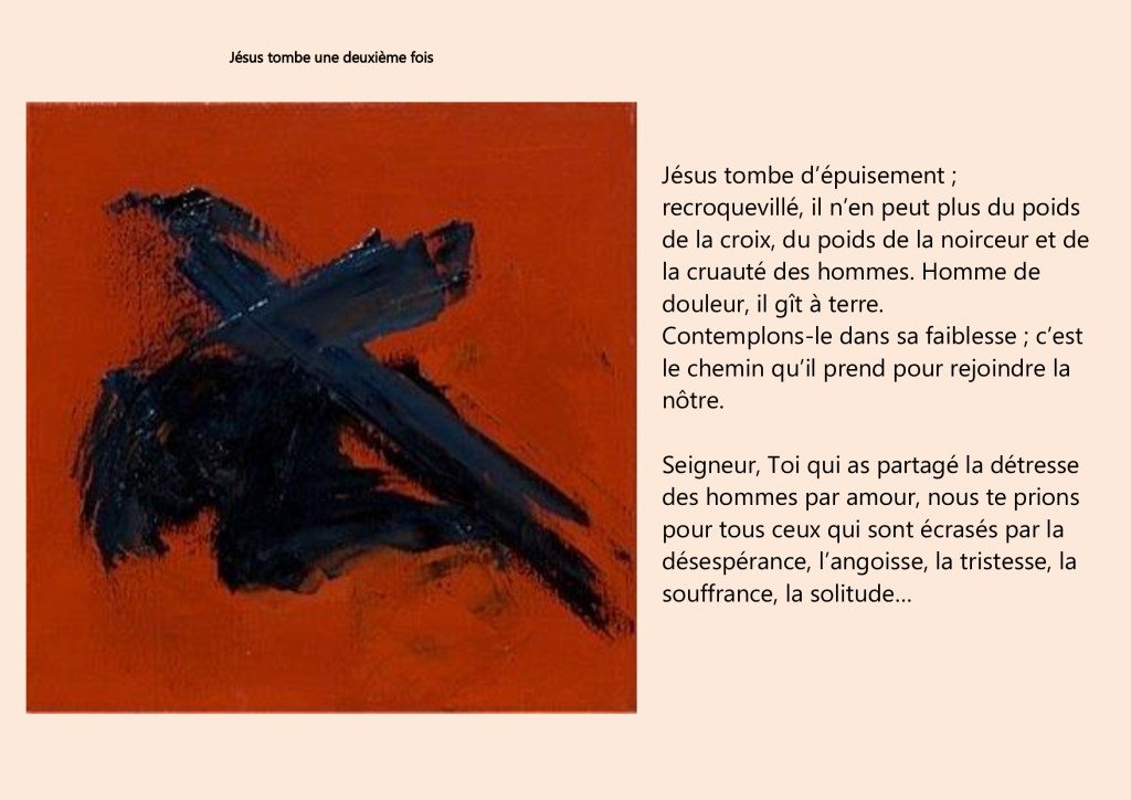 Jésus tombe une deuxième fois-Jésus rencontre les femmes de Jérusalem Publié le 30 mars 2021 par edvsmp Partager : Cliquer pour partager sur X(ouvre dans une nouvelle fenêtre) X Cliquez pour partager sur Facebook(ouvre dans une nouvelle fenêtre) Facebook J’aime chargement… Similaire