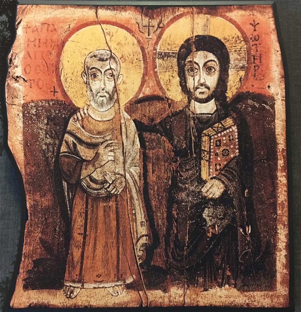 Elle est l’icône copte la plus ancienne, écrite dans le 8ème siècle en Egypte et représentant le Christ et Abba (abbé) Mena (285-309 apr. J.C.); elle se trouve actuellement au Louvre à Paris.