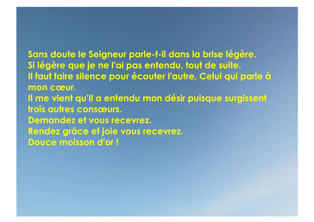 Douce moisson Publié le 21 septembre 2021 par edvsmp Prière et photo proposées par Jean-Pierre Brunet Partager : Cliquer pour partager sur X(ouvre dans une nouvelle fenêtre) X Cliquez pour partager sur Facebook(ouvre dans une nouvelle fenêtre) Facebook J’aime chargement… Similaire