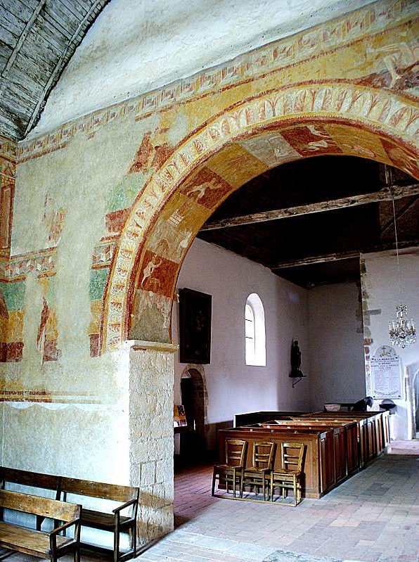 A l’entrée du chœur, l’arc évoque, par des fresques, les travaux des champs et les saisons.