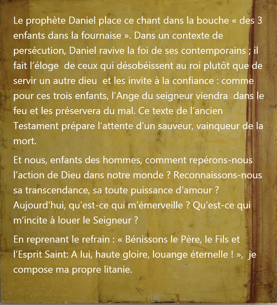 Tout au long de la semaine, la liturgie propose à la place du psaume un extrait du cantique de Daniel.