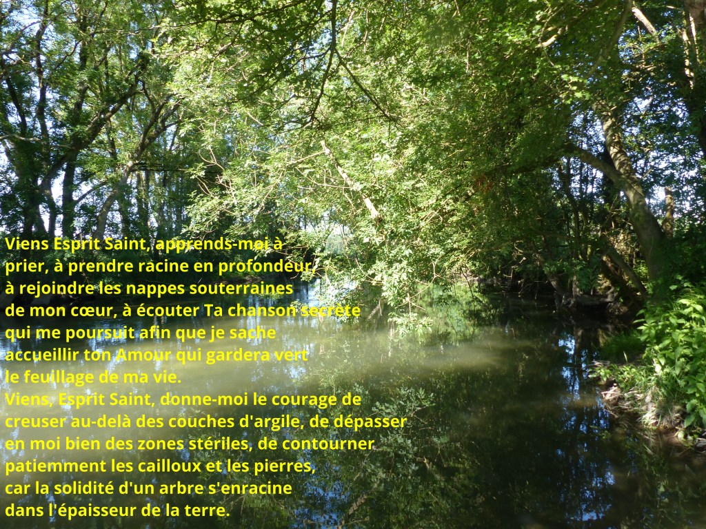 Je peux, si je le souhaite, prier l’Esprit Saint avec les mots du Père Michel Hubaut: »Comme un arbre planté près de l’Eau Vive, apprends-moi, Esprit Saint, à prendre racine en profondeur. »