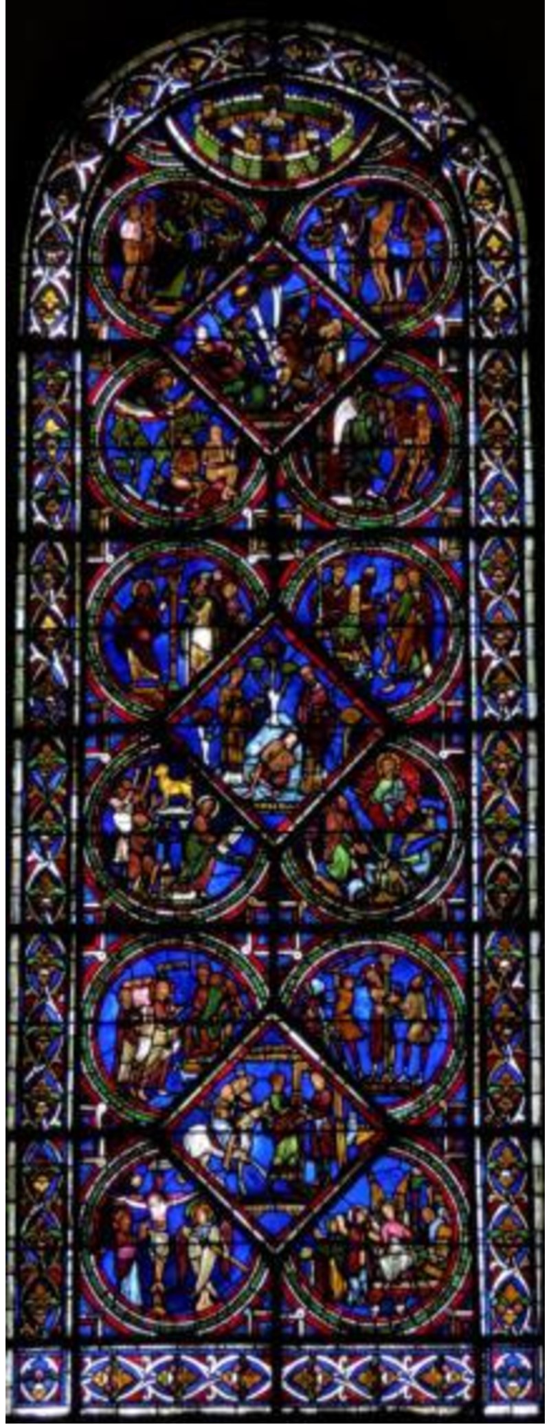 Les Berruyers peuvent contempler le vitrail du déambulatoire de la cathédrale de Bourges. Nous nous arrêtons, aujourd’hui, devant le vitrail du Bon Samaritain de la cathédrale de Sens.