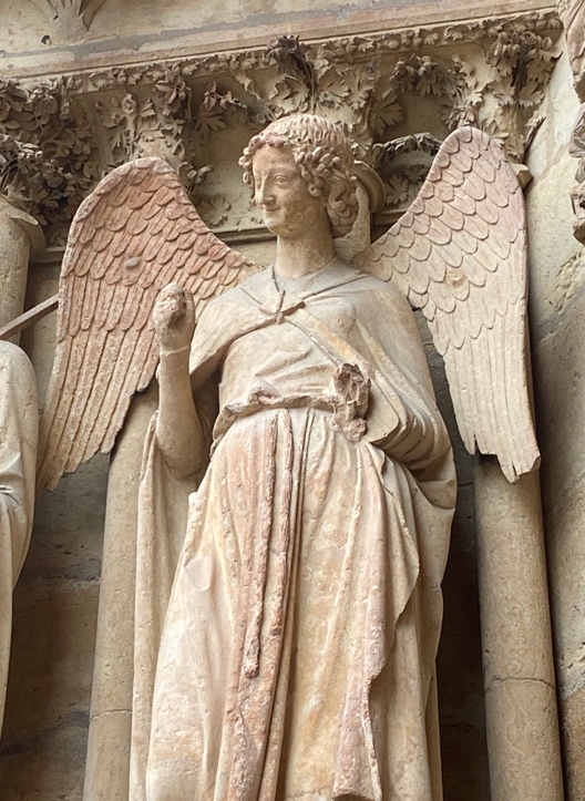 La cathédrale de Reims est bien connue pour son ange au sourire…Lorsque la cathédrale a été bombardée lors du premier conflit mondial, la statue de l’ange a été décapitée et un journaliste titra : « Reims a perdu son sourire »