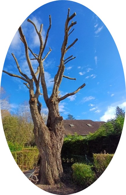 Solidement enraciné, tronc puissant, le saule, bien que taillé, « lance » haut ses branches vers le ciel…